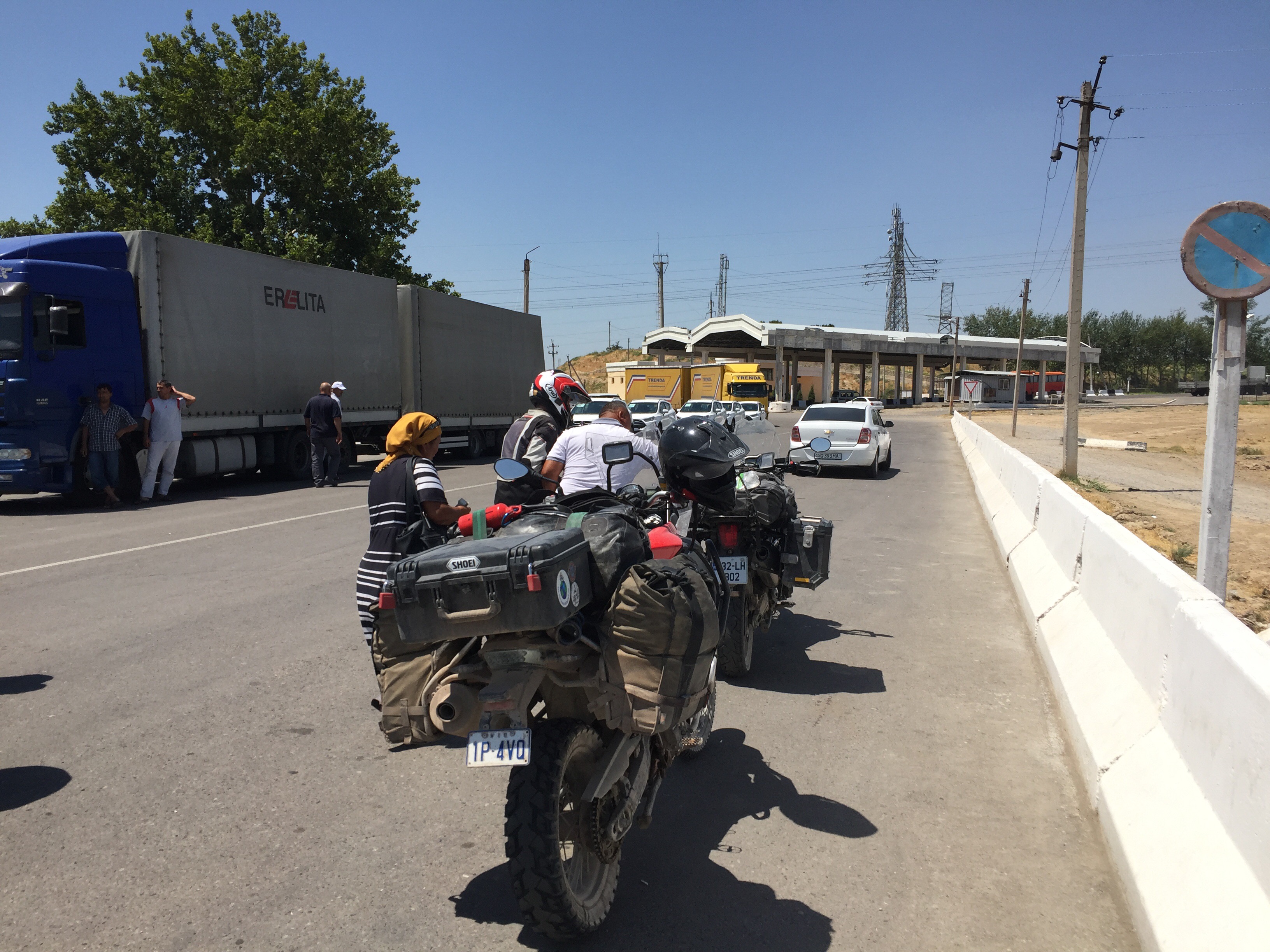 West of Kungrad it gets drier and flatter if that is possible and with nothing to look at other than Gas Fields it was head down and on towards the border and out of Uzbekistan as quick as possible. Around 100 Kilometres before the Border I met up with two riders from the Czech Republic and took on the Border formalities with them. After around two hours we were through into Kazakhstan and onto the worst road I had encountered for a long time which ran like a dirt and sand rollercoaster full of potholes all the way to Beyneu.