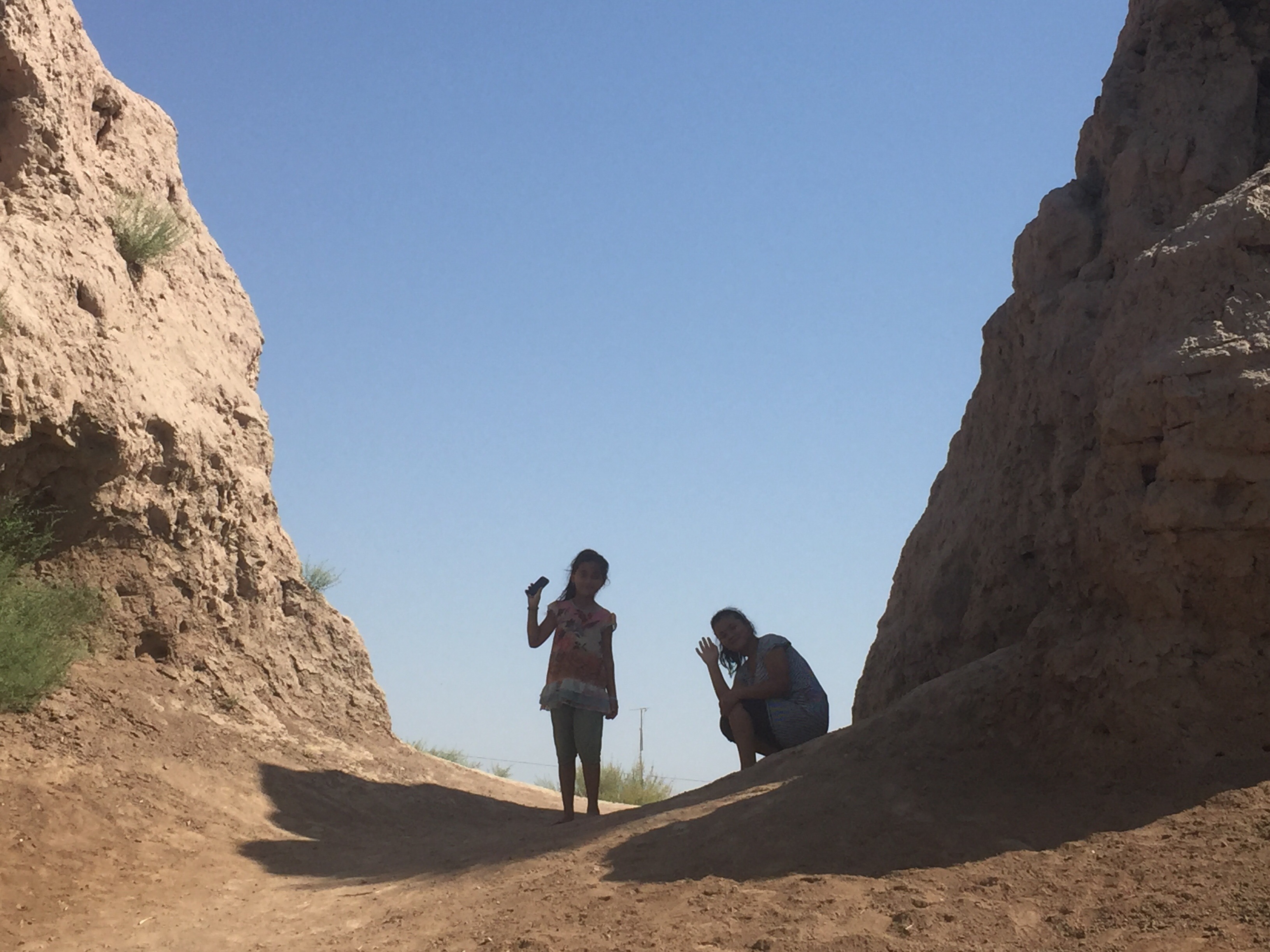 I got into Khiva only just finding some Petrol at a house along the way, if you see the bottle just go knock on the door and say” Fill her up please”. I stayed at a great little hostel recommended to me by Olga, a Russian girl I met at our Hostel in Bukhara, Charles was also staying here and he and Olga had organised a tour of some Ruins for the following day so I put my hand up for that for something different.