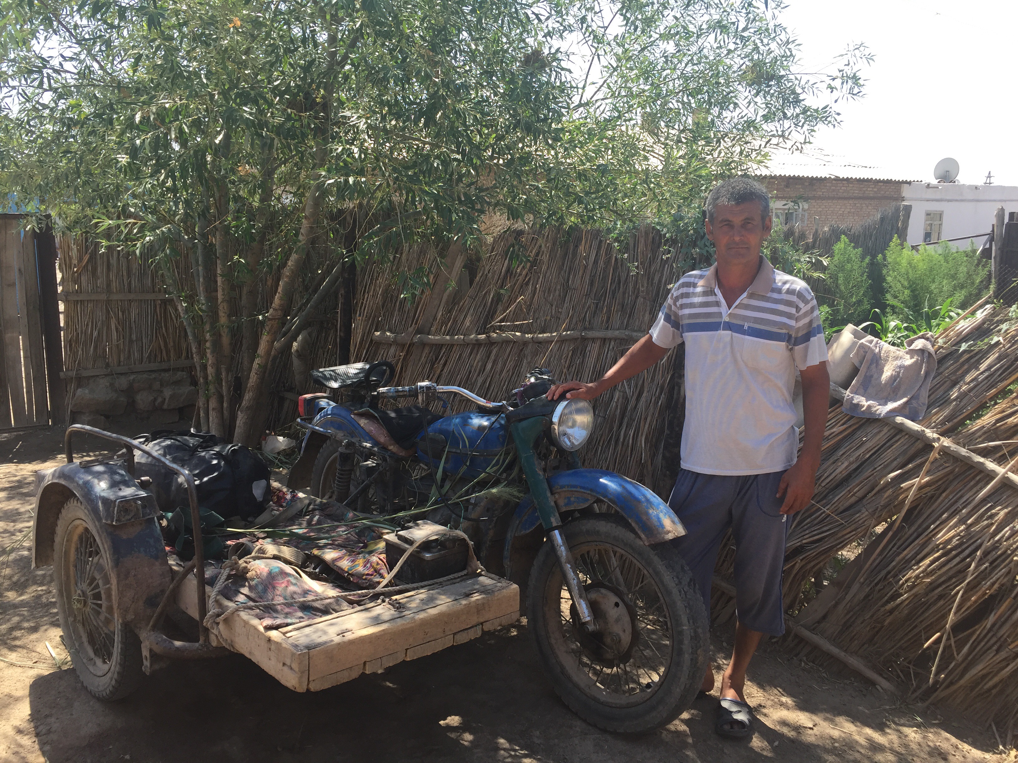 As I was riding into a massive headwind my fuel economy was a little worse than normal and as I rolled into Kungrad I had around 100 kilometres before being empty, certainly not enough to make it to the next fuel in Kazakhstan over 400 kilometres away. After trying three Petrol Stations only to be told repeatedly “No Benzine in Kungrad” I started to get a little worried. I didn’t have enough to get back to Nukus and I couldn’t go any further west without fuel, I was considering a Hotel for the night and a taxi back to Nukus to buy fuel but just then I remembered the I Overlander App. This App allows travellers to enter things like Camping Places and also luckily Black Market Fuel. I found only one marked for Kungrad so I set off down a bombed out dirt track full of dried mud to where the marker was. Here I found a group of old men sitting in the street discussing world events but they couldn’t help me find Benzine (Petrol), just then two guys appeared from nearby houses and jumped straight on their phones to hunt for petrol. Thankfully this guy found some at a friends house so he jumped on the back of my bike and within 15 minutes I had a tank full of the dirtiest and most expensive Petrol yet, but beggars cant be choosers……