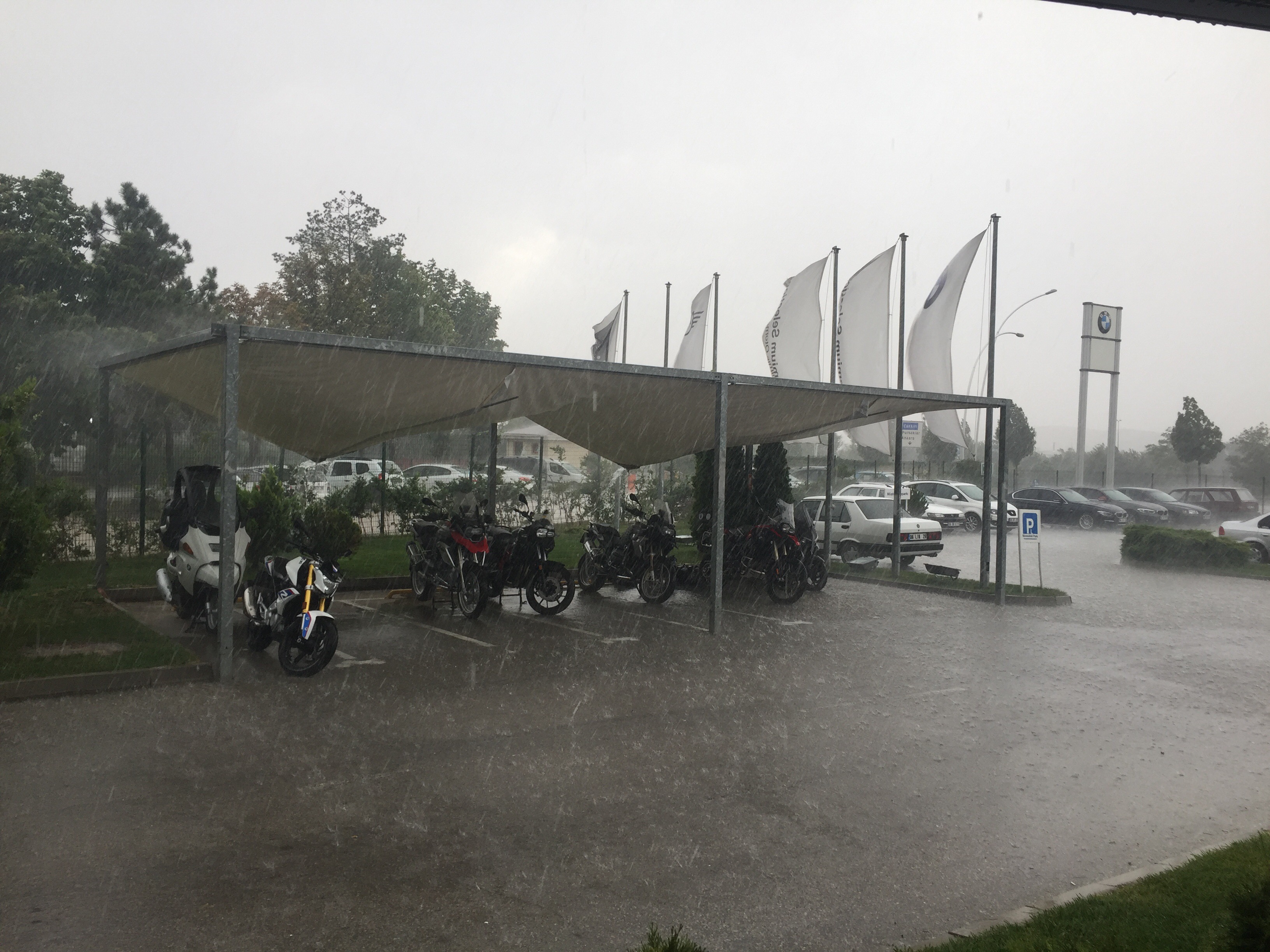 I arrived at the Kyrgyzstan Border Crossing in the rain and was the only one there. The guards initially got excited about an issue with my vehicle import and were obviously looking for cash to make the problem go away but it turned out when I crossed from Mongolia to Russia they put the incorrect date on the form then crossed it out and changed it. Once they realised that all the other dates matched they had no real reason to look for a bribe so I was free to go……