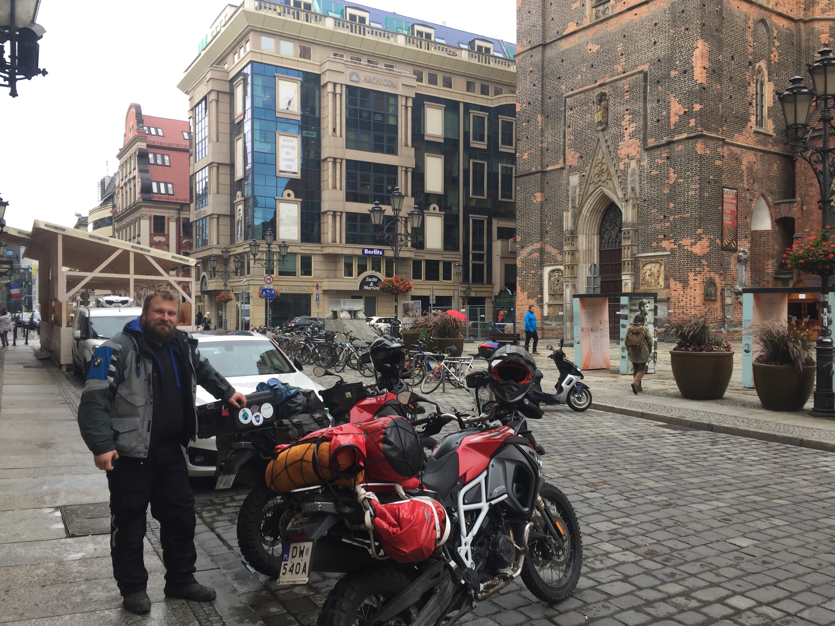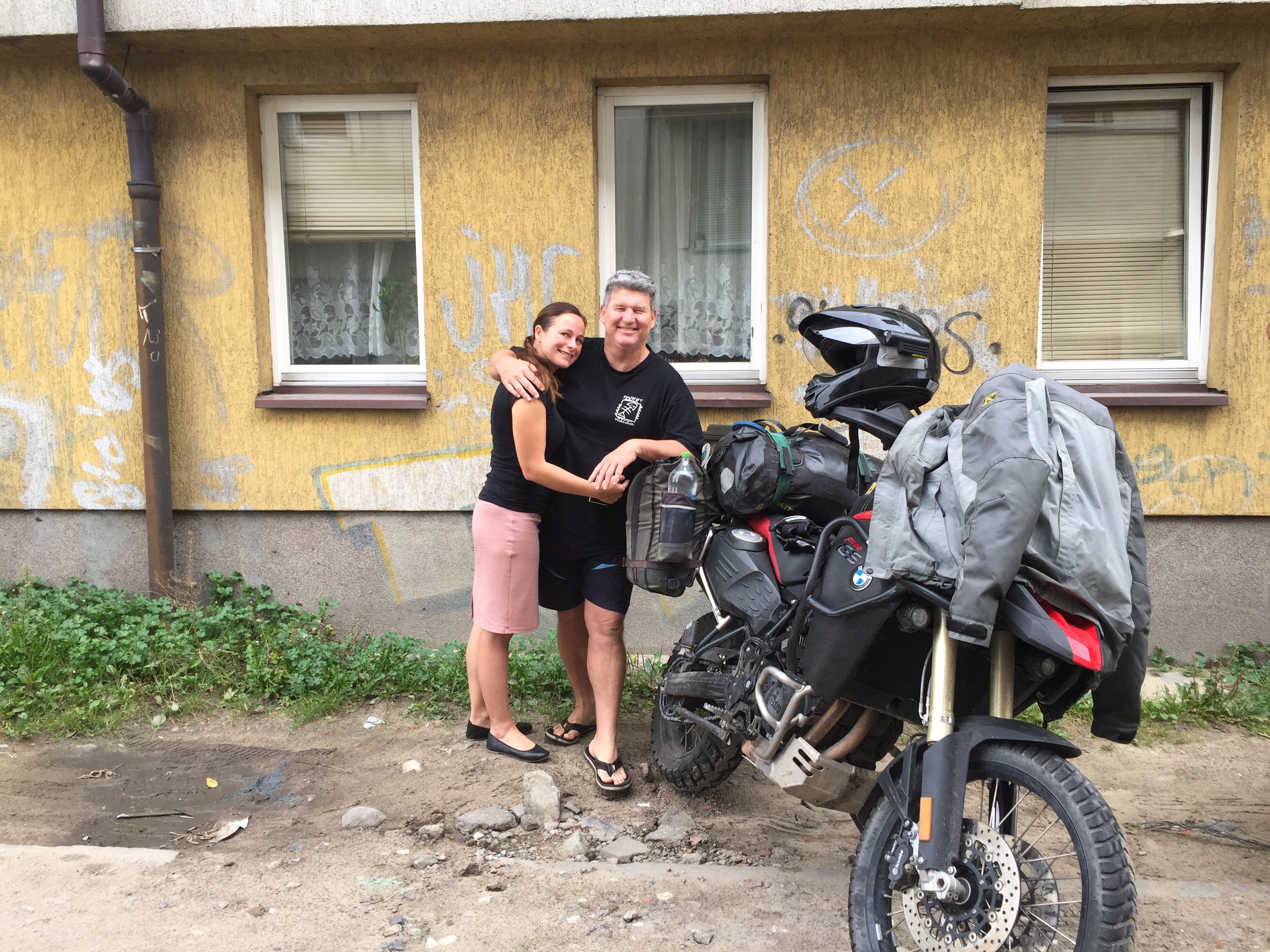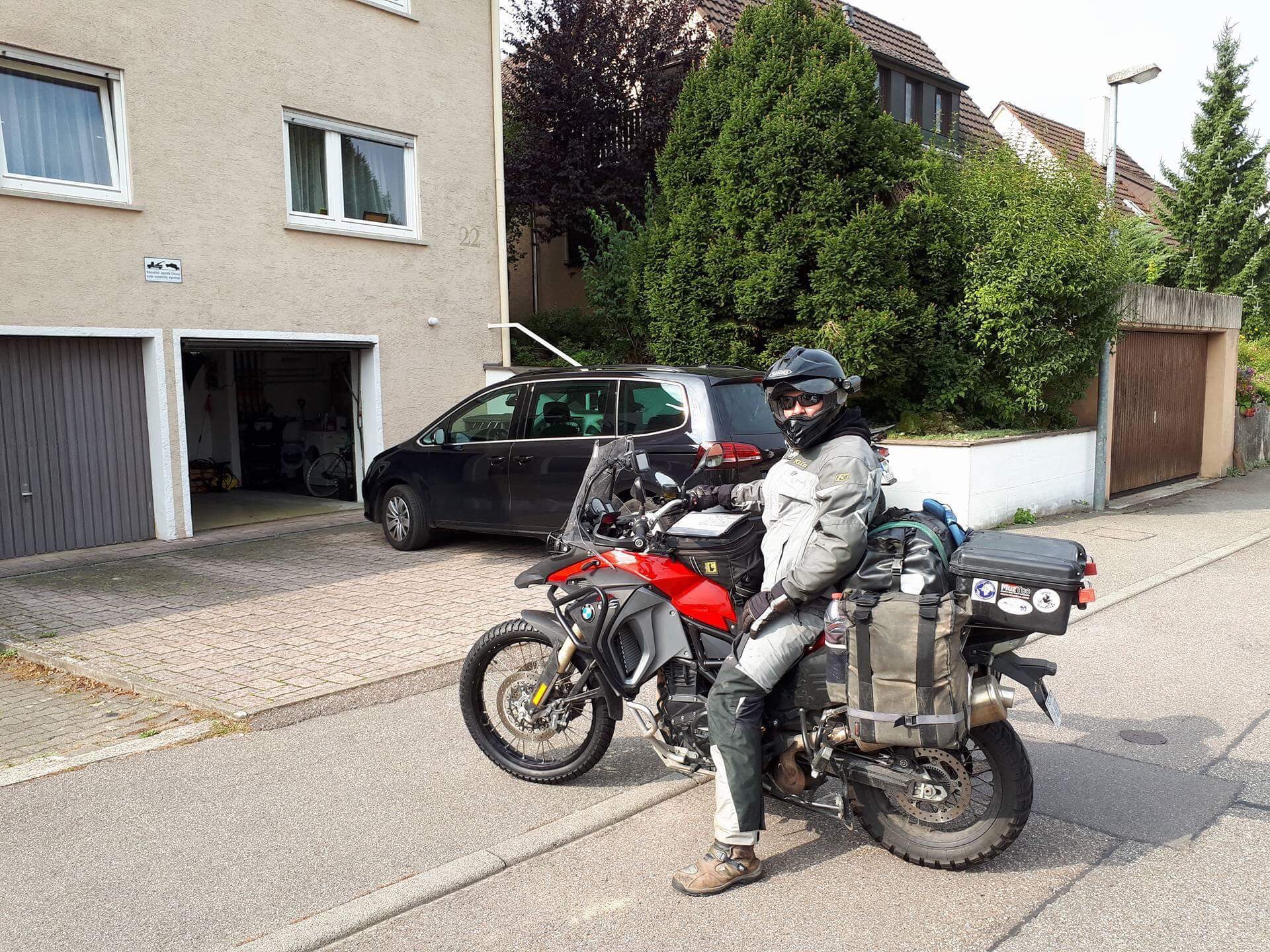 The next day I rode out of Prague and headed back into Germany to find the small Town of Neckarsulm near Heidelberg in South Western Germany. This is where Till and Carolin lived (The couple I met in Kyrgyzstan and rode with through Azerbaijan and Georgia), they had invited me to stay for a while and I was looking forward to catching up. So a few hours on the clogged up Autobahn and I found their place and settled in for a few days rest. It wasn’t all relaxation, I put on a new front Tyre which Till had ordered for me, the original had over 24,000 kilometres on it and could easily do another few thousand but they are so much cheaper in Germany. I also gave Till a hand changing his very worn out rear Shock on his Africa Twin, this had been ‘repaired’ a few times as it collapsed in Kazakhstan and again in Georgia but they managed to ride all the way home on this ‘Frankenstein’ Shock.