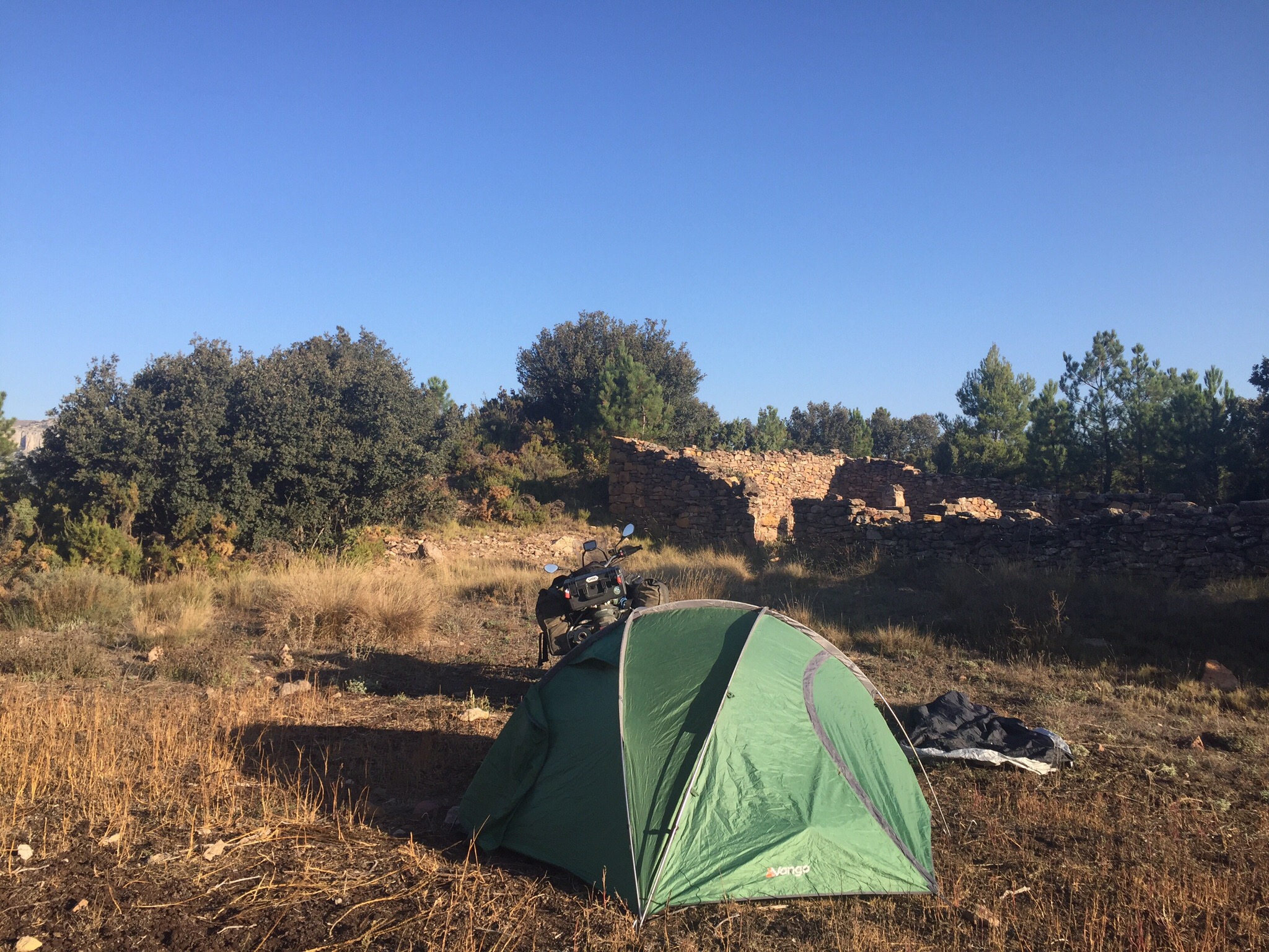 I found some nice quiet roads with hardly any cars on them and then some dirt tracks through the mountains where I decided to set up camp for the night next to a ruined Farm House.