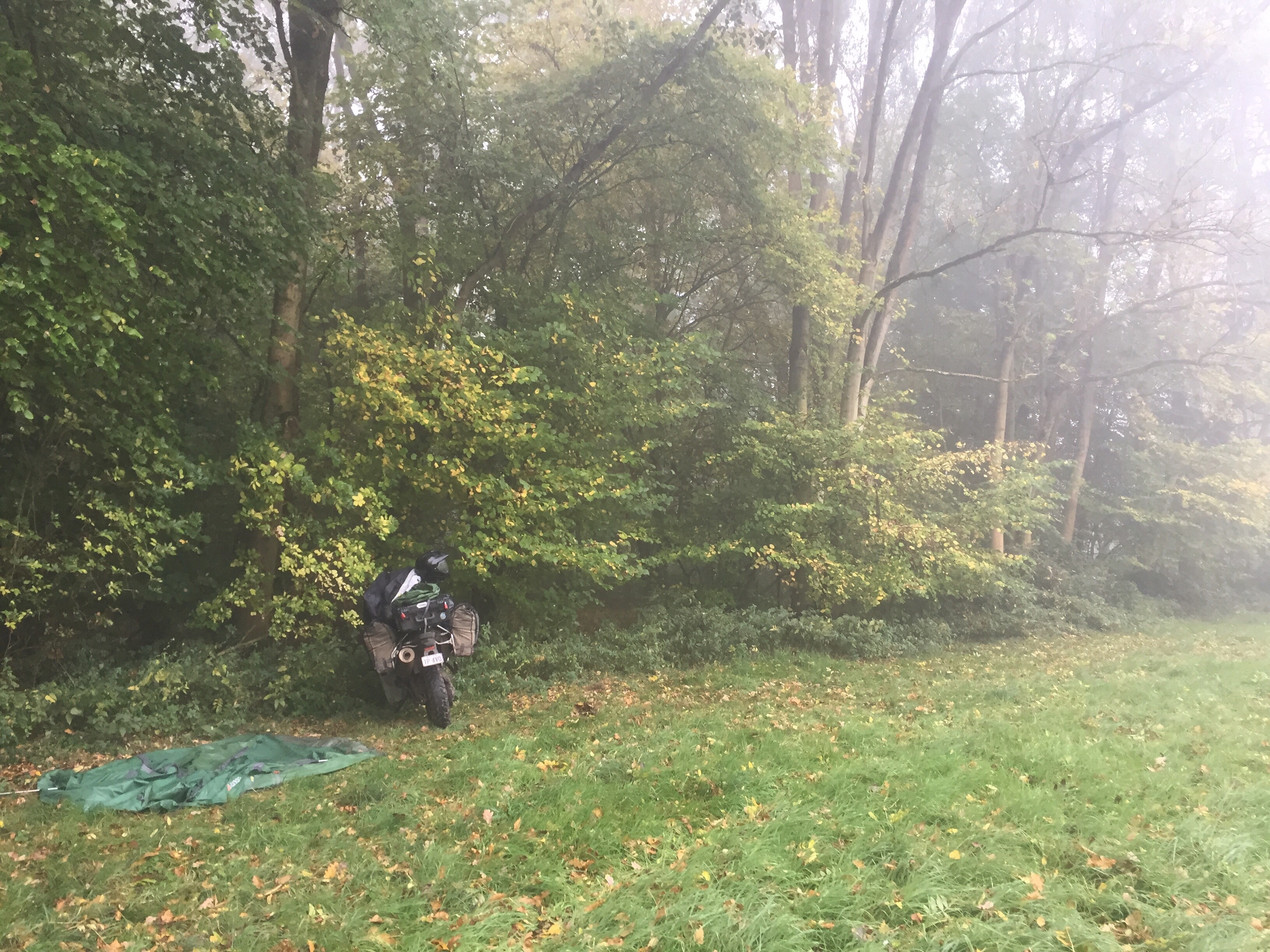 The weather was turning cold again as I headed north and it was getting more difficult to find out of the way places to camp. I found this on a small track just outside a village in Northern France just before dark, beggars cant be choosers……